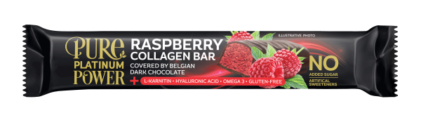The PURE PLATINUM POWER raspberry-curd collagen bar is the meeting point of premium quality and functional nutrition.
