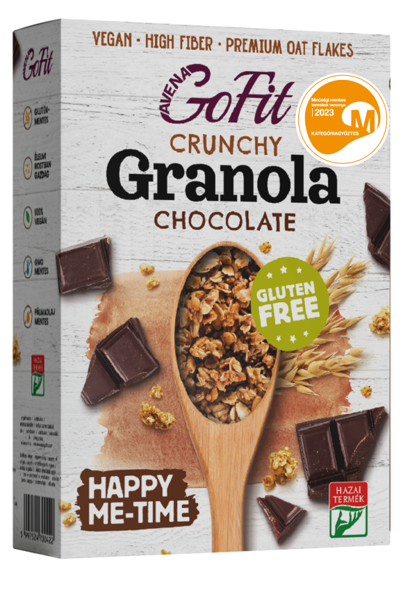A prémium gluténmentes zabpehelyből valódi étcsokoládéval és mandulapálcikákkal készült, rostban gazdag, ropogós készítmény fogyasztható bármely napszakban (ajánlottan reggel) étkezésként vagy annak kiegészítésére.